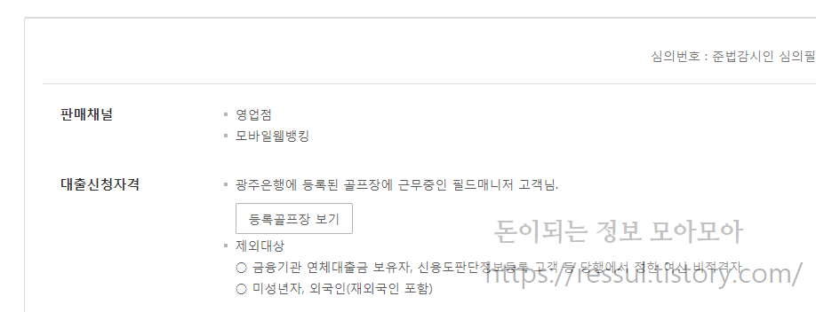 중요한 대출신청을 하기 위한 자격은 광주은행에 등록된 골프장에서 근무해야 합니다.