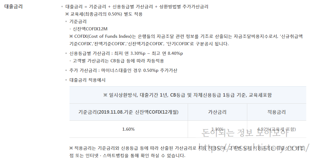 그리고 마이너스 통장 방식으로 대출을 할 경우 0.5% 추가 금리가 가산됩니다.