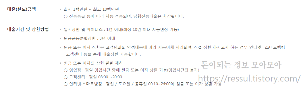 대출 한도의 경우 100만원~1000만원까지 가능합니다.